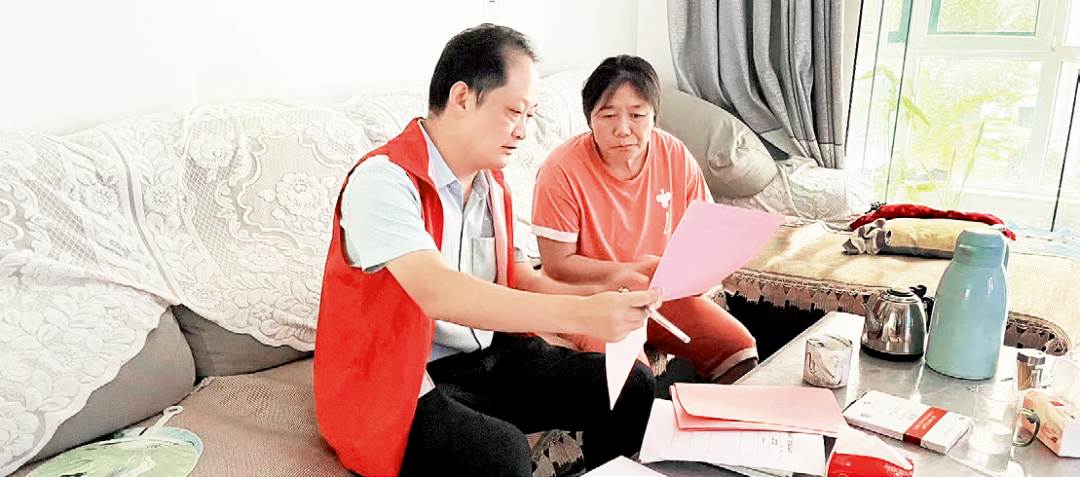 泰安市东平县房产管理服务中心党组成员何锡明向小区业主介绍全县经济社会发展情况,询问业主对小区物业管理的意见建议。