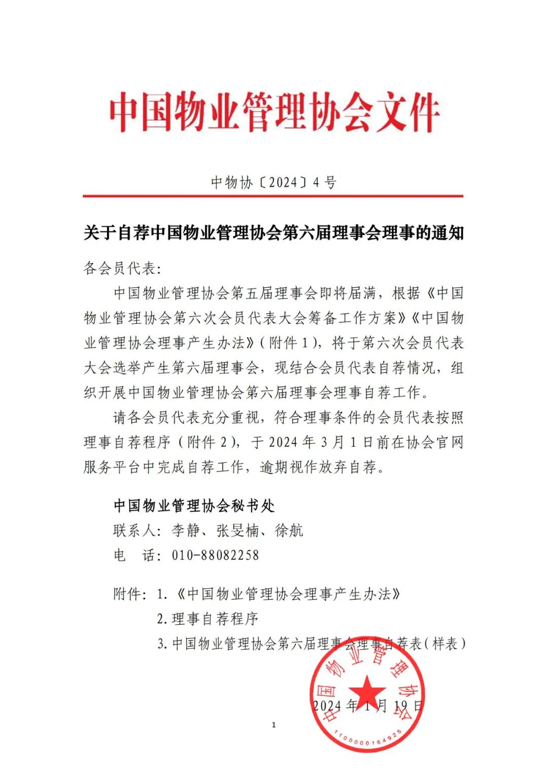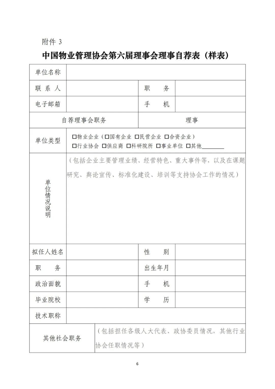 中国物业管理协会第六届理事会理事自荐工作即将截止