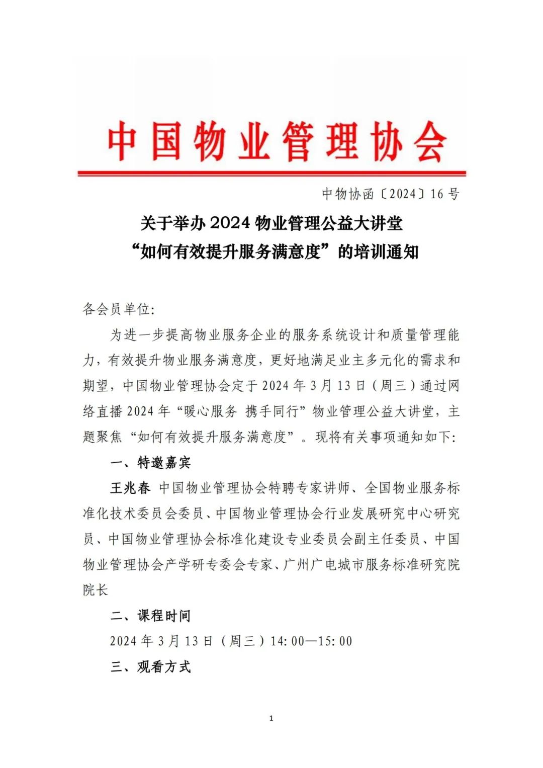 关于举办2024物业管理公益大讲堂“如何有效提升服务满意度”的培训通知