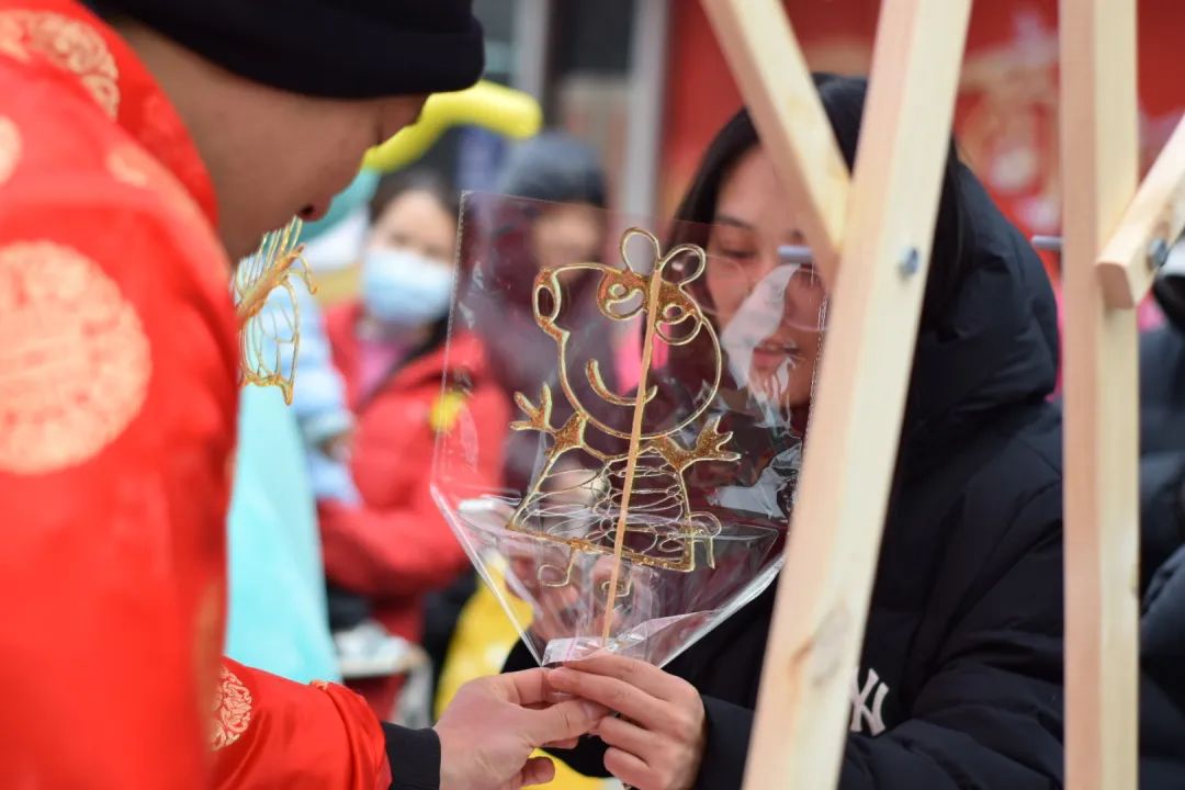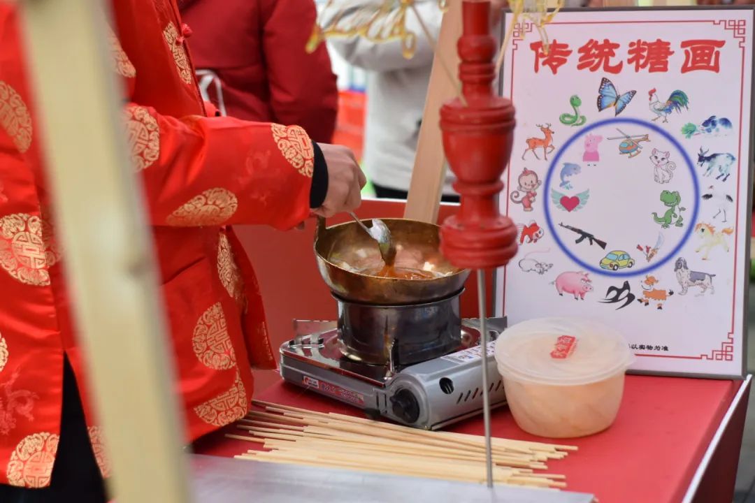 在元宵喜乐会上,画糖画、吹糖人