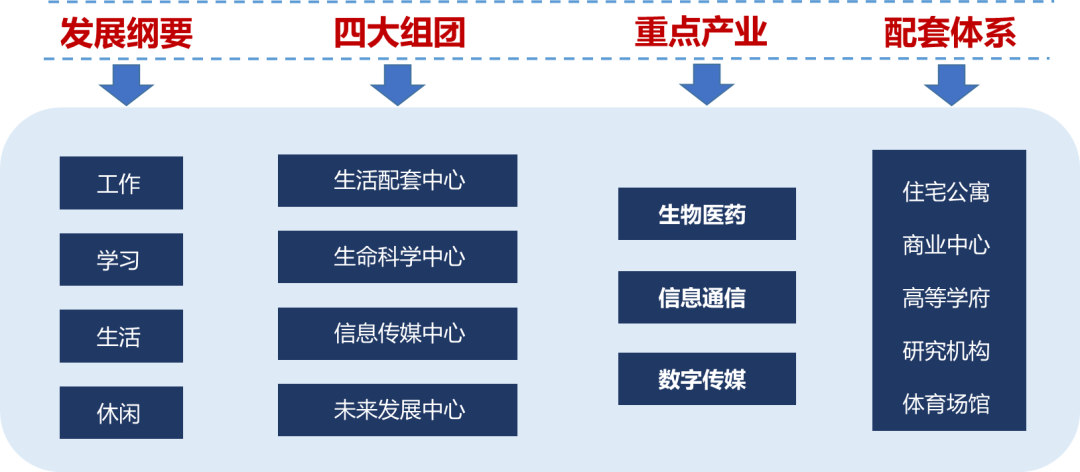 图片来源:互联网公开资料 纬壹科技城在产业园区开发运营方面的科学理念和成功实践,启发了全球优秀园区建设运营者。目前,纬壹科技城是我国乃至世界上很多国家在建设产业新城、科技园区时学习的范本和对标案例之一,从某种意义上讲,纬壹科技城也是科技园区、产城融合及社区化运营的概念最早的来源之一。 1.1 产业定位清晰,产业链配套完整 纬壹科技城在创办之初,综合考虑了产业的关联性、未来市场需求和新加坡产业基础三方面的关键因素,进行统筹规划布局。例如,在确定产业定位过程中,新加坡注意到本国在生物医药产业领域的发展基础相对薄弱,但考虑到生物医药产业的产业带动性强和未来广阔的发展前景,因此对该产业进行了长达十年的论证分析,后经过多方研究和详细的产业培育计划,纬壹科技城最终选择了生物医药、信息通信、数字传媒作为三大产业。 图:新加坡纬壹科技城规划建设考虑的三大因素 图片来源:中指研究院 纬壹科技城围绕自身鲜明的产业定位,引入了相应的完整产业链:从相关政府机构、产业协会到上下游企业,并提供产业相关的共享设施,以提高园区的吸引力。此外,纬壹科技城以“工作、学习、生活、休闲”为发展纲要,持续打造完备的生活和产业配套体系,包括住宅、公寓、商业中心、高校、研究机构、体育场馆等,形成了“生活配套中心”、“生命科学园中心”、“信息传媒中心”、“未来发展中心”四大组团建筑,有力支撑起产业链上相关企业发展,为园区实现社区化运营奠定扎实的基础。 图:新加坡纬壹科技城总体定位及规划 图片来源:中指研究院综合整理 在完整的产业链配套的吸引下,纬壹科技城汇集了全球顶尖的生物医药、信息通讯和数字传媒领域的优质企业和人才,成就了一个完善的产业生态系统。例如,在生物医药产业为主的“启奥城”,这里集中了7个生命科学研究院和重点实验室,拥有2300多名科研人员,为生物医药科研人员和生物医药公司提供了一个资源共享、密切协作的科技平台,加快了从科研成果到临床实验以及进一步商业化的进程,构成了从上游研发到下游开发的产业链,加大了科技成果对产业发展的推进作用。 图:新加坡纬壹科技城产学研一体化创新系统 图片来源:公开资料 1.2 区域功能融合,建筑空间即社区 为了使有限空间发挥最大的效益,纬壹科技城根据用地范围和产值范围进行预测,科学制定不同类型用地、不同功能组团的容积率,并将其归入规划体系,严格落实。通过高效的土地运用,一方面实现了区域功能融合发展,另一方面提高了单位土地的产出效益,最终将纬壹科技城打造成为了一个完整的综合社区。 纬壹科技城的规划用地中,产业用地占比仅为13%,而道路、绿地和公共设施的规划用地合计超过了45%,此外还有18%的混合用地及24%的居住用地。在产业园区中保留了如此庞大的非产业用地,形成区域发展的功能配套,强化了园区的社区属性,使园区发展充满活力。 图:新加坡纬壹科技城规划用地情况 数据来源:项目资料 纬壹科技城采取了高密度的开发策略,但不同于传统的高密度模式,这里的开发建设更加有的放矢,它将一个建筑组团,甚至单栋建筑视为一个功能完善的“创新社区”,确保投入使用即可独立运作。例如,园区内的“启奥城”,作为生命科学核心组团,这里拥有15家生物医药企业和7座生物医学研发中心,还配有重要的实验室。此外,组团内银行、餐饮、幼儿园、书店、诊所等城市配套一应俱全,满足研究人员的生活配套需求。建筑间的公共空间散落着多元化口袋公园,成为科创人士们的自由交流天地。 纬壹科技城不只做整体规划,这里的每一栋建筑都是一个社区。例如在“启汇城”,该建筑高20多层,这里汇集了研究机构、科技企业、住宅公寓、科技孵化器、行政中心等,充分体现了综合创新社区的发展理念,吸引了众多国际一流企业落户,其中包含知名网络游戏“第二人生”的总部和研发中心。 图:新加坡纬壹科技城“启汇城”垂直功能布局 图片来源:互联网公开资料 1.3 注重园区开放、自由与资源共享 纬壹科技城从规划建设到运营服务都在强调园区的开放性,允许人们自由的工作、生活、娱乐、学习,营造资源共享的社区空间。纬壹科技城内规划有商务核心区、生命科技区、信息通讯区、生活居住区、纬壹公园、淡马锡传媒区媒体城、起步谷等主要功能区,更功能区之间没有封闭的围墙阻隔,便于企业和个人进行开放交流和实现资源共享,打造的活力社群。 为了营造园区开放、自由与资源共享的氛围,纬壹科技城对各功能区进行了科学的规划布局。例如,在距离地铁最近的地方主要设置商业功能;在车行交通方便、距离地铁较远的地方设置商务功能;在距离地铁最远、环境幽静的地方布置生活、娱乐、学习配套设施以支持核心产业发展的综合性项目。 纬壹科技城通过建筑间的互通及商业的布局来营造自由交流空间,例如在建筑物间设置连廊,来实现区域空间的互联,在楼栋底层设有西餐厅和咖啡馆,便于专业技术人员和商务人士能取得有价值的信息,或者萌发创新思绪。 荷兰埃因霍温科技园——欧洲最智慧1平方公里 埃因霍温科技园前身是飞利浦高科技园,这里承担着飞利浦集团在全国范围内的研发职能,园区的开放氛围吸引来自全球科技领域的开发者在这里聚