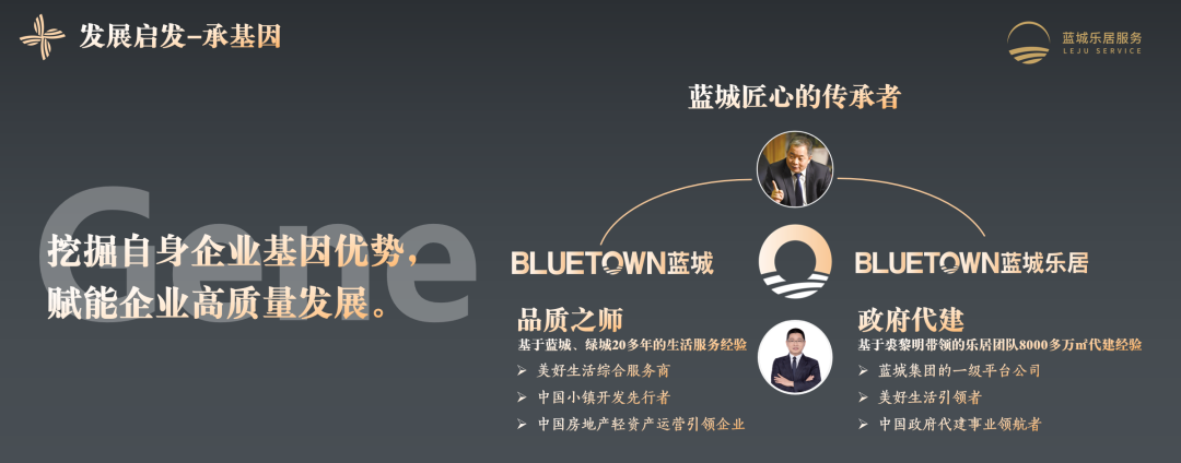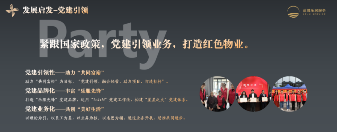 2024年4月18日,由北京中指信息技术研究院主办,北京中指信息技术研究院中国房地产TOP10研究组、中国物业服务指数系统承办的“2024中国物业服务百强企业研究成果发布会暨第十七届中国物业服务百强企业家论坛”在北京隆重召开。▲2024中国物业服务百强企业发布会现场在物业服务百强的颁奖典礼上,浙江蓝城乐居物业服务集团有限公司(简称:蓝城乐居服务)荣获“2024中国物业服务综合实力百强企业”。▲蓝城乐居服务集团物业百强获奖证书在近年的发展过程中,蓝城乐居服务集团开拓出了“三新”特色之路:新赛道探索者——创新破局助力共同富裕;新资源联合者——联动伙伴优化合作生态;新治理参与者——共同推动完善社区治理。▲汪婷婷女士作主题演讲面对物业管理行业新形势,物业企业如何突围而出?蓝城乐居集团党委委员、蓝城乐居服务集团总裁汪婷婷女士出席发布会并参加“2024中国优秀物业服务企业成功经验分享”,作《“创新”破局 助力“共富”——城市生活服务新赛道》主题演讲,分享了蓝城乐居服务快速发展的关键:“承基因”,承袭企业集团优势;“新赛道”,另辟行业独特道路;“强践行”,落地研究创新成果;“联资源”倍增资源生态力量;“树标杆”奠定鲜明品牌形象。领航——党建引领+文化先行公司的发展离不开方向的指引。蓝城乐居服务集团作为蓝城乐居集团旗下服务运营专业集团,以党建引领,以文化先行,引领业务发展。党建引领——融入社会治理创新蓝城乐居服务集团传承蓝城集团社会责任心和蓝城乐居集团党建传统,以党建引领为核心,创建“星星之火”党建体系,“党建引领性”“党建品牌化”“党建业务化”,让党建引领业务方向,推进物业服务融入社会治理创新。▲党建引领业务文化先行——深耕美好生活内涵文化是“美好生活”的灵魂和血脉,蓝城乐居服务集团秉承蓝城集团董事长宋卫平先生提出的“服务是通往美好生活的唯一出路”的宗旨,研究生活内涵,深耕服务品质,不断奏响美好生活“新乐章”。▲文化是美好生活的灵魂基因——品质之师+政府代建核心基因是企业生存发展的根基。蓝城乐居服务集团挖掘自身两大基因:“品质之师”和“政府代建”,推动公司赛道的选择和深耕。▲深度挖掘自身基因品质之师是传承蓝城集团是中国高品质营造和服务的代表。蓝城创始人宋卫平先生,素来被冠以“中国房地产品质教父”“地产界乔布斯”之称。蓝城对品质的执念,自成立至今,始终坚持产品是核心竞争力。蓝城乐居成立后,更是继承了蓝城的品质追求与美好情怀,品质表现突出,在蓝城集团内部的飞行检测中常常名列前茅。政府代建是特色蓝城集团副总裁、蓝城乐居集团党委书记/总裁裘黎明先生带领的乐居团队累计代建8000多万㎡,其中政府代建占据非常大的比例,已成为国内政府代建的领航者。蓝城乐居服务集团正是传承这样高品质的基因和政府代建的良好基底,才能探索出自己的道路。赛道——共富基底+快速创新创业路上没有捷径,唯有另辟蹊径。蓝城乐居服务集团基于自身核心基因,开拓“共富”和“创新”的新赛道。一方面围绕 “共富 ”,深耕政府代建项目的服务提升;一方面围绕 “创新 ”不断研发服务体系,丰富服务内涵,逐步走出了适合自己的赛道,并致力于成为:保障房服务优秀企业、未来社区运营特色品牌、老旧小区焕新服务示范者、城市运营服务风向标、高端物业服务精耕者。未来社区运营、保障房服务尤为突出,并得到行业专业认可。▲“中国保障房物业服务优秀企业“证书▲“中国物业服务特色品牌企业——未来社区运营优秀品牌”证书践行——研究先行+实践开拓创新是服务业发展的根本动力。蓝城乐居服务集团将研究和实践两手抓。研究先行蓝城乐居实施创新驱动发展战略,研究先行,集聚研发精英力量,成立蓝城乐居研究院、蓝城乐居博士后工作站、蓝城乐居生活服务研究组等,已承接11项国家/省部级课题、70余项专利、10项省市标准,并开展持续创新的生活服务课题:构建并不断完善更新研策服运一体化生活服务战略能力矩阵,并全力对保障房、美好生活、美好商业、未来社区、楼宇服务、城市运营、社区治理等各领域进行引领性研发攻关,增强自主创新能力,提升居民幸福生活。▲蓝城乐居研究矩阵▲《未来社区建设与运营实践探索》强化实践努力实践,“优秀团队+共创理念+灵活模式”开拓新局面。蓝城乐居服务集团拥有一支懂房子、懂运营、懂生活的创业团队,在取法极致企业文化、努力奋斗创业精神的共创服务理念下,通过灵活合作模式,快速发展,迅速扩大辐射规模。联盟——蓝城魔方资源生态圈战略合作可实现资源共享,夯实生态圈,提升整体竞争力,扩大市场。一方面,强强联合。与地方城投、国企及大型企业建立战略合作,或成立合资公司,迅速扩大规模。另一方面,组建资源联盟。为保障生活服务的切实落地,创新生态产业联盟机制,建立幸福魔方联盟,与行业协会形成深度战略合作联盟,导入健康、养老、教育、生活、创业、保险等各种资源,赋能行业同仁,助力幸福生活新引擎。▲蓝城幸福魔方联盟成立▲杭州市北未来社区资源联盟矩阵标杆——关键支角+自我生长蓝城乐居服务集团在落地服务运营过程中,以做一个项目树一个标杆的目标在不断提
